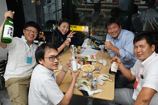 7月上旬。オープンして4ヶ月たちました。 東京の兄弟店「神田 サケラバ」さんが福岡に来てくれました!営業後にいっしょに春吉の日本酒バーの名店「雲レ日」さんに行ったり。 深夜のグループで料理大会がスタートしたり。 ますますがんばります〜よ!!